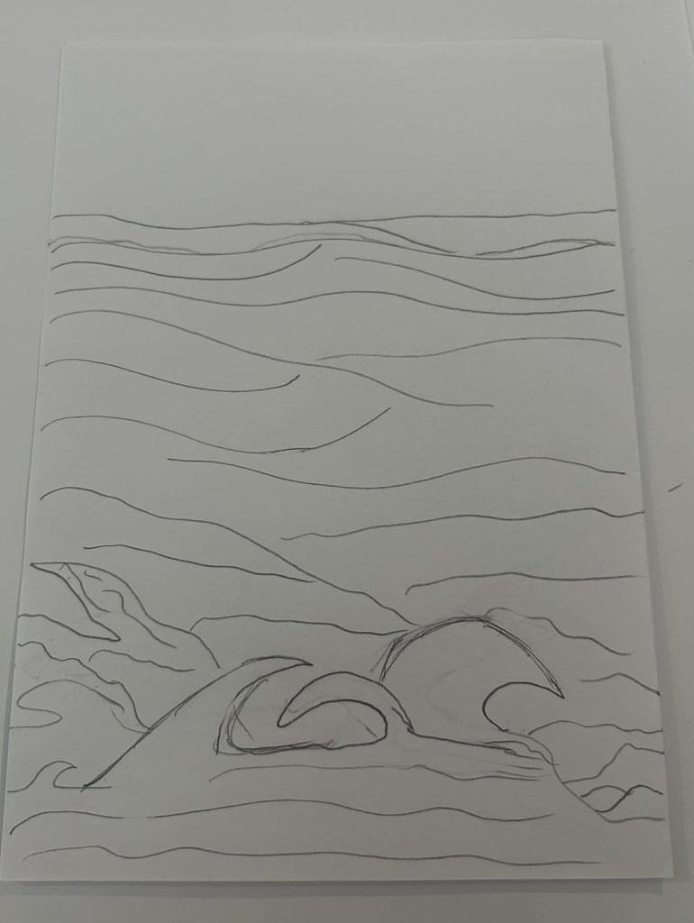 Reflections: Creating this water painting was incredibly fun. Initially I found it challenging to create the gradient of colour to signify the increasing depth of the water. Once the gradient was complete and dried, I then added further colours to enhance the illusion of the underwater currents as well as the sunlight piercing through the water surface.